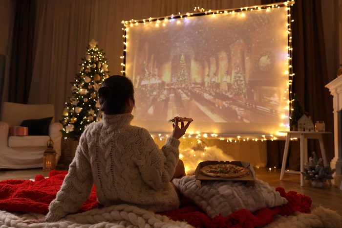 Конечно, специально покупать проектор, чтобы создать праздничную атмосферу в квартире – не очень бюджетная идея (хотя на маркетплейсах предлагают много вариантов, и недорогие в том числе). Но если прибор пылится где-то в кладовке или вы его редко используете, именно сейчас самое время перейти с ним на ты. Закройте шторы в комнате, зажгите ароматические свечи, найдите на телефоне звук треска камина и включите новогоднее кино. В ту же секунду появится ощущение уюта и волшебства.