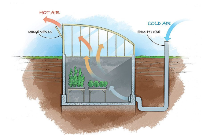 Тот грунт, который будет окружать теплицу, значительно смягчит разные резкие перепады температур, от холода в тепло и наоборот. Внутри теплицы будет создана комфортная стабильная температура.