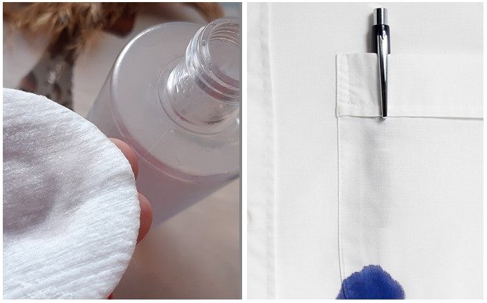 Возьмите ватный диск, смочите его в ацетоне и накройте чернильное пятно примерно на 15 минут. Вещество растворит следы от ручки, и одежда вновь будет презентабельно выглядеть. Просто, быстро и результативно!