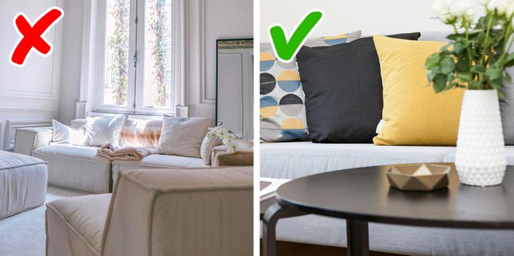 Использование исключительно светлых тонов в осеннем интерьере также нежелательно. Ведь осень может похвастаться такими яркими цветами как оранжевый, желтый и красный. Так что вкрапление предметов такой расцветки будет лучшим решением. Вы можете добавить подушки, пледы, коврики соответствующих оттенков или даже покрасить одну из стен. Как альтернативу эксперты советуют внедрить в дизайн темно-синий, горчичный или цвет шалфея. В качестве основных цветов можно взять кремовый, светло-серый или белый. Однако не переборщите с акцентными цветами и помните, что баланс — это самое важное.