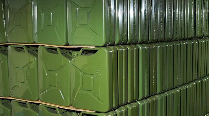 Тогда же командование гитлеровской армии объявило конкурс на создание принципиально новой концепции тары под топливо. И наилучшим оказался известный нам классический вариант прямоугольной формы, разработанный группой инженеров под руководством Грюндфогеля. Дизайн оказался настолько удачным, что уже в 1939-м к началу войны немцы имели на своих складах тысячи таких удобных канистр. После войны их стали производить и для гражданского сектора, а вскоре и в международных масштабах.