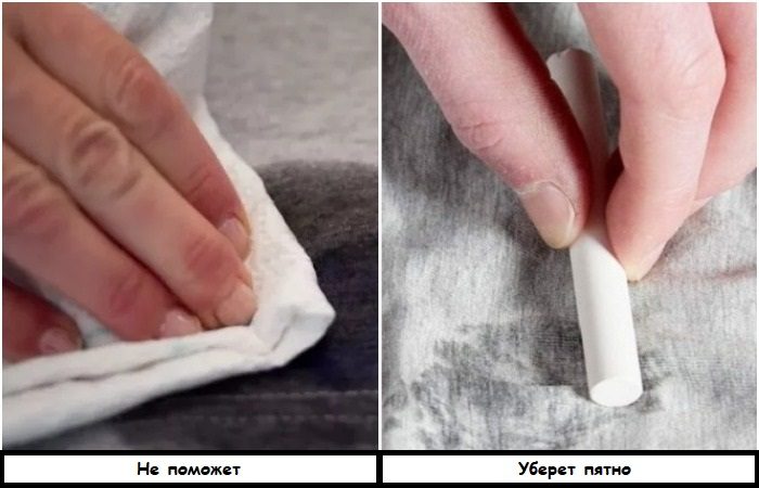 Свежие жирные пятна нужно натирать мелом