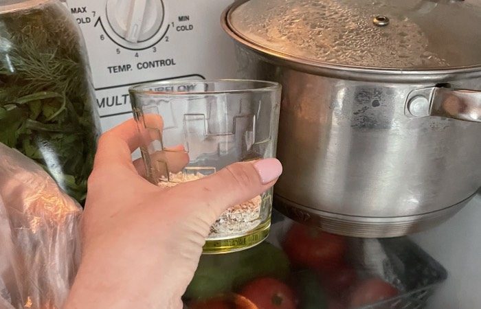 Если вас беспокоит неприятный запах в холодильнике, не стоит переживать. Просто насыпьте овсянку в стакан и поставьте на полку холодильника. Она прекрасно поглощает неприятные запахи. Но мы все же советуем перебрать продукты, чтобы выявить причину появления этого запаха и избавиться от нее. А от запаха отлично избавит стакан с овсянкой.