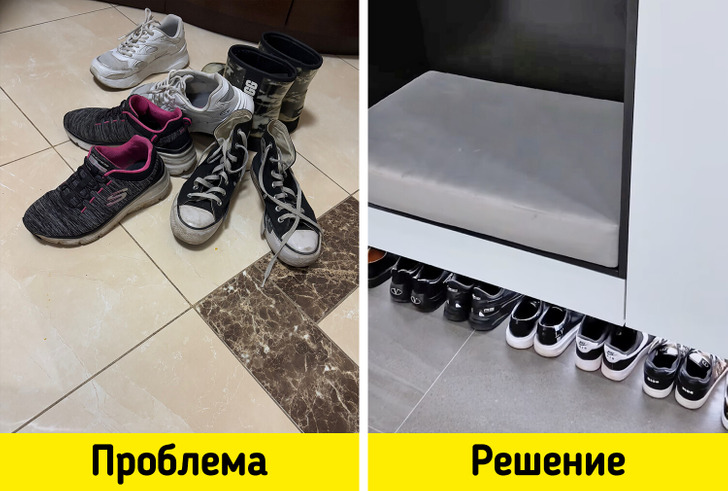 Гора обуви в прихожей создает беспорядок и грязь, но для того, чтобы организовать правильное хранение для нее, нужно хорошо подумать. Если у вас много высоких пар (сапоги, ботинки) или обуви на каблуках, вам не подойдут маленькие галошницы и шкафчики.