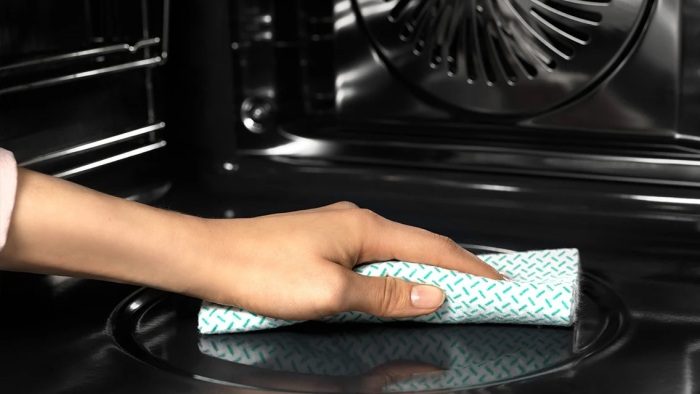 Очистите духовку от всех остатков еды и прочих загрязнений.
