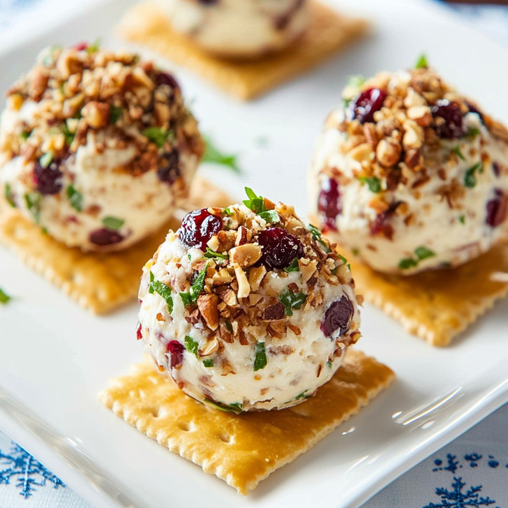 Сырные шарики — отличная новогодняя закуска, которую можно подавать на крекерах. Обжарьте орехи в духовке и измельчите с помощью блендера. Кусочки должны напоминать крупную крошку. Мелко порубите сушеные ягоды и зелень и смешайте их с орехами. Отложите в сторону. Смешайте мягкий сливочный сыр и тертый сыр твердых сортов, мелко нарезанную сушеную клюкву или вишню, и охладите смесь в холодильнике 1 час, чтобы она загустела. Скатайте шарики и обваляйте в смеси орехов, сушеных ягод и зелени.