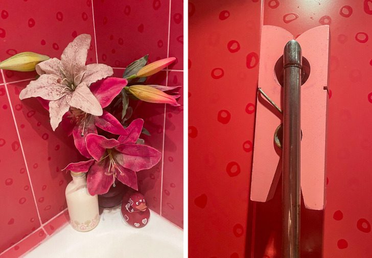 Например, можно купить мыльницу необычной формы. Поставить вазу с искусственными цветами, прицепить большую розовую прищепку на держатель полотенец или украсить интерьер забавной резиновой уточкой.