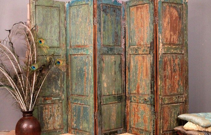 Разделение пространства в небольших помещениях настоящая находка дизайнеров, чтобы зонировать это пространство. Иногда для этих целей используется складная ширма, и старая дверь тоже может стать ей. Правда тут потребуется уже несколько дверей, не обязательно выполненных в одном стиле. А соединить их очень просто, также с помощью петель. Двери можно дополнительно перекрасить в разные цвета. Они отделят кухню от гостинной, либо угол с гардеробом.