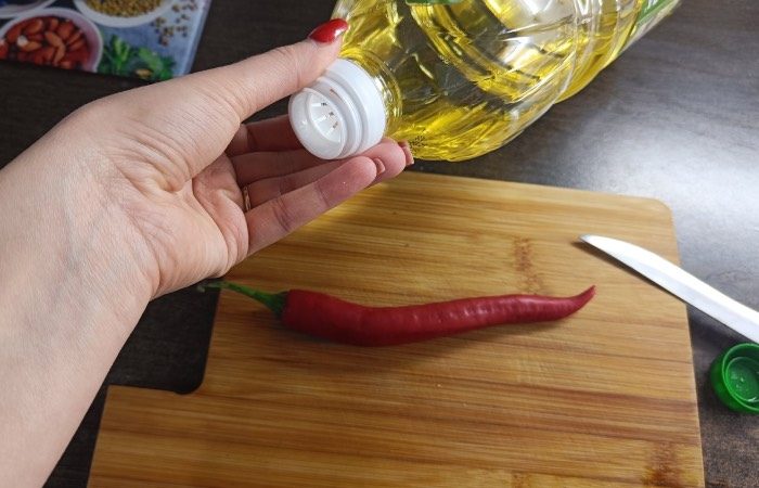 Все дело в том, что при нарезке этого перца, часто на коже рук появляется раздражение и зуд. Но мы точно знаем, как этого избежать. И поможет нам в этом самое обычное растительное масло. Просто смажьте им руки и уже после этого приступайте к нарезке перца чили. Эта хитрость позволит защитить кожу рук и избавит вас от привычного раздражения.
