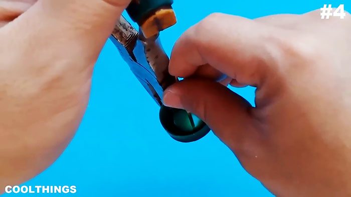 Накручиваем модифицированную крышку на бутылку с водой и слегка сдавливаем, в результате жидкость будет вытекать из нее экономно тонкой струйкой.