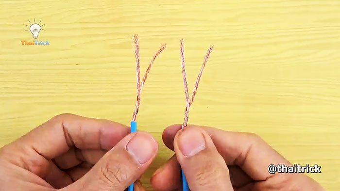 Если сделать обычную скрутку проводов, то стоит ее потянуть и она тут же порвется в месте самой скрутки. Чтобы этого не произошло нужно соединять провода по другому.Оголяем концы. Делим их на равные части.