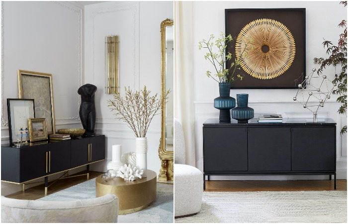 Принято считать, что нейтральной базой являются только светлые оттенки, в частности, белый, серый, бежевый. Однако черный также входит в эту категорию. Благодаря своим особенностям, он прекрасно сочетается практически со всеми цветами, выгодно оттеняя их. Но если вы хотите, чтобы комбинация получилась действительно стильной, броской и роскошной, тогда в качестве компаньонов выбирайте золотые или латунные элементы. Они будут гармонично перекликаться с черным в интерьере и уравновешивать друг друга. Кстати, совсем необязательно использовать черный цвет на большой площади – он вполне может быть таким же акцентом, как и золото, например, в фурнитуре.