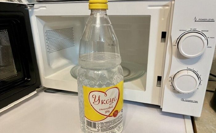 Возьмите стеклянную миску или пластиковый контейнер, налейте 500 миллилитров теплой воды, добавьте одну чайную ложку уксуса, поставьте в микроволновую печь и запустите таймер на пять минут. После этого вам останется лишь протереть дно и стенки устройства влажной губкой, и оставить микроволновку с открытой дверцей, чтобы она высохла.