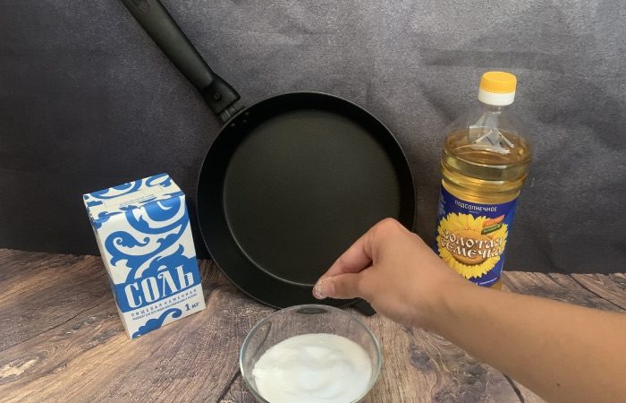 Этому способу уже много лет. Им пользовались еще тогда, когда мы с вами не родились. Так что не приходится сомневаться в его эффективности. Итак, чтобы правильно подготовить новую чугунную сковородку к работе, необходимо все пара простых действий. Для начала ее необходимо тщательно вымыть с моющим средством и просушить. Далее необходимо поставить сковородку на включенную плиту и засыпать в нее соль. Слой соли должен быть примерно три сантиметра. В течение сорока минут необходимо прожаривать соль, к этому времени она должна потемнеть. После этого необходимо снять сковородку с плиты и остудить, а после промыть под проточной водой. После чего вновь поставить на плиту, но в этот раз залить в нее растительное масло. Его необходимо прогревать в течение двадцати минут. Такие действия помогут надолго продлить срок службы вашей чугунной сковородки.