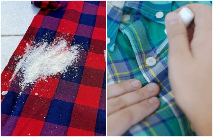 А вот если вы обнаружили застарелые, тогда обратитесь за помощью к другому эффективному средству – соли. Она отлично подойдет для очистки любой ткани, как белой, так и цветной. Намочите грязный участок, щедро присыпьте его солью и оставьте на ночь. Утром потрите хорошо пятна и отправьте одежду в стиральную машинку.