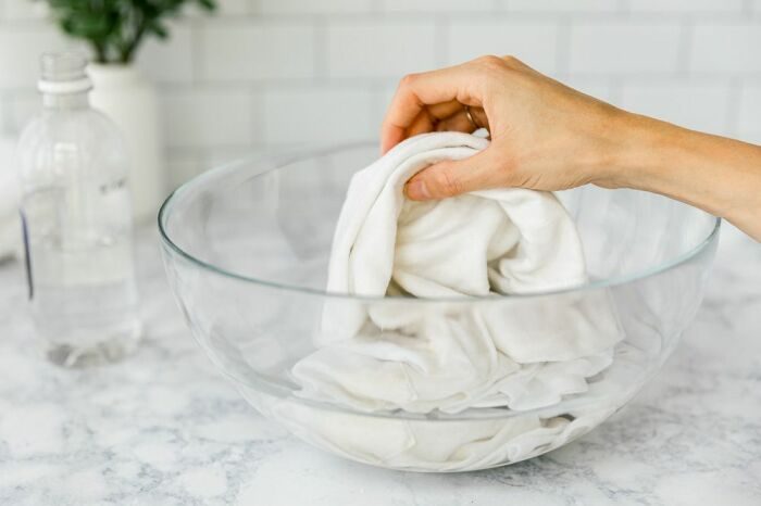 Уксус также весьма неплохо справляется с удалением клеевых пятен.