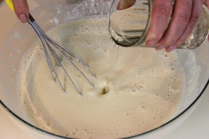 Приготовьте блины на основе воды из-под макарон.