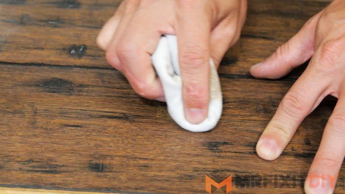 Если на дереве имеются не просто царапины, а рельефные дефекты, то необходимо разогреть восковой карандаш, сделав красящий стержень мягким.