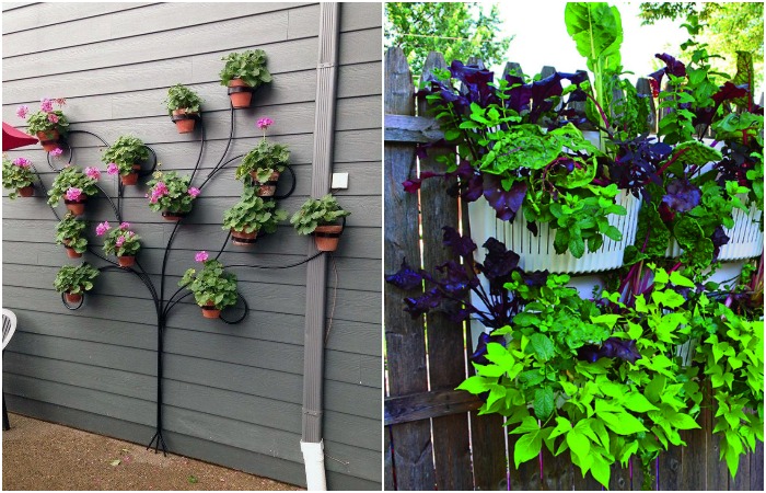 В таких конструкциях можно создать и грядки, там не обязательно должны расти только лишь сплошные цветы. Небольшой огород там вполне приживётся, к тому же больше будет находиться на солнце. Эти конструкции также очень мобильны и не займут много места на участке, а забор будет скрыт.