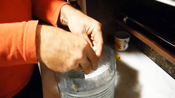 Переливаем полученное грибное крошево, разбавленное природной водой, в посуду просторней (подойдет пятилитровая пластиковая емкость с отрезанным верхом). Если не удалось найти природную воду, то можно воспользоваться водопроводной, предварительно выдержав ее в открытой посуде не менее одних суток.