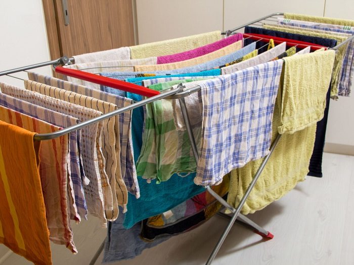 Если вы знаете, что на выходных к вам должны прийти друзья или родственники, организовывайте стирку заблаговременно. Да и в целом, старайтесь складывать одежду сразу, как она высохла, а не через три дня. Что касается сушилки, то ее обязательно складывайте и убирайте подальше от любопытных взглядов: в кладовку, на балкон, за шкаф, под кровать – выбирайте вариант, который вам подходит.