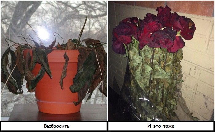 Выбрасывайте и комнатные растения, и букеты в вазе, если они завяли