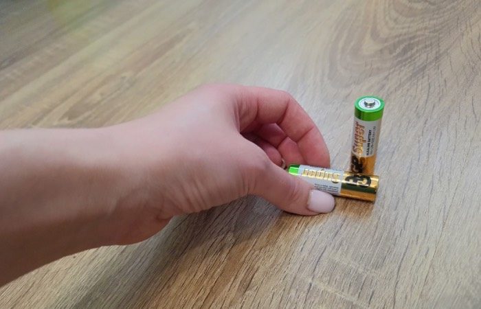 Для того, чтобы определить сколько заряда осталось в батарейке — просто подбросьте ее на уровне пятнадцати сантиметров над ровной поверхностью. Если батарейка упадет и останется лежать, то заряд полный. А если она отпрыгнет от поверхности, точно мячик — ее заряд стремится к нулю. Благодаря таким простым действиям, вы всегда будете точно знать насколько заряжены ваши батарейки.