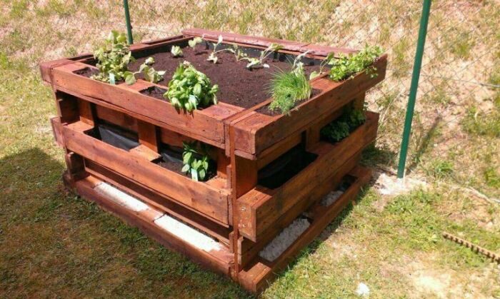 Использование паллетов к тому же, очень экономически выгодное обустройство грядок. Их можно взять в магазинах, если там они больше не требуются, а купить также не будет затратно. Паллеты всегда сделаны из дерева, потому это экологичный материал, беспокоиться о том, что вредные вещества могут попасть в почву не нужно. Отличный способ по переработке отходов и уменьшении количества мусора.
