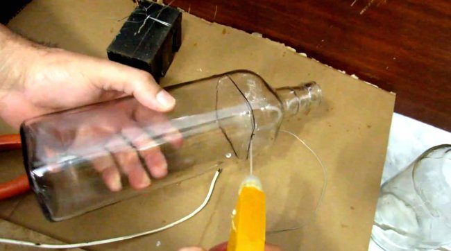 Вы услышите своеобразный щелчок стекла, и бутылка лопнет точно по той линии где проходила проволока нихрома.