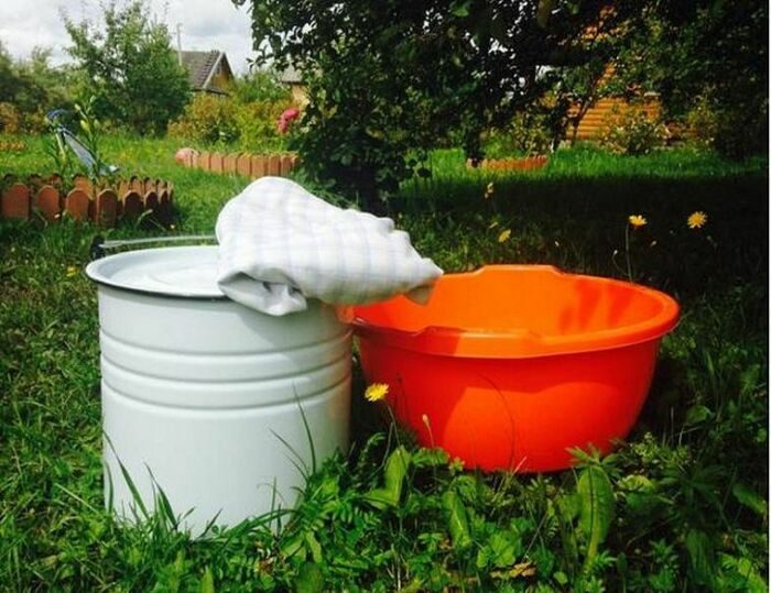 Есть и иной вариант, наиболее простой — атмосферный холодильник. Он работает интересным, но при этом простым способом — это соотношение температуры воды, которая испаряется, и температуры точки pосы. Чтобы соорудить подобную конструкцию, необходимо будет взять таз и ведро, которое имеет очень плотно прилегающую крышку, а также воду. В ведро необходимо поместить продукты, закрыть его крышкой и после поставить в таз наполненный водой. Ведро также необходимо будет накрыть тканью, чтобы именно она впитывала влагу, для этого вполне подойдёт кухонное полотенце, оно должно быть наполовину в воде. Так жидкость будет подниматься по волокнам и охлаждать ведро с продуктами. Создать его очень быстро и просто, источники энергии ему совсем не требуются. Но устанавливать его можно только в тени и на сильном сквозняке, а летом он может быть неэффективен вовсе.