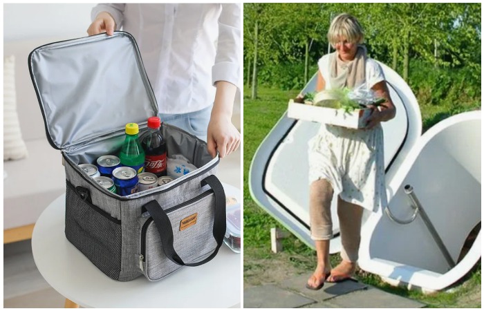 Сумка холодильник — тоже интересный и вовсе не требующий сил вариант. Сумка-холодильник — один из самых распространённых вариантов хранить еду в прохладе во время пикников или очень долгих поездок. Однако стоит понимать, что термосумка и сумка-холодильник — две совершенно разные вещи. Первая будет работать, как и описанный выше термос, и будет просто держать температуру у заранее охлаждённой еды, но не заморозит её. А сумка-холодильник сама будет поддерживать xoлодную температуру внутри себя.