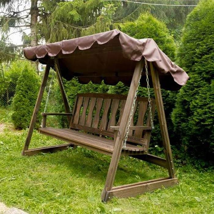 Древесина — материал очень хороший, главное — красивый, но совершенно недолговечный, если за ним не ухаживать и не делать это правильно, а также регулярно. Качели будут гармонично вписываться в ландшафт, а элегантные модели с тентами защищать от яркого солнца. Мягкое сидение, если оно подвешено на цепях, будет, без сомнения, очень привлекательно. Но всю древесину нужно обрабатывать специальными средствами, защищать от непогоды и насекомых, а на зиму точно убирать в сарай или хотя бы под навес.