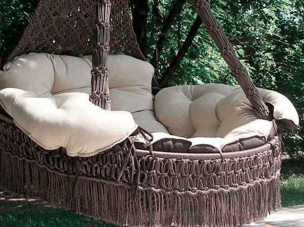 Комфорт при выборе качелей тоже не должен стоять на последнем месте. У них должны быть мягкие подушки или сидение, если оно плетёное, да и сама конструкция рассчитана для того, чтобы можно было прилечь, а ноги при этом не свисали. Регулировка спинки очен важный аспект, благодаря этому можно сделать тот угол наклона, который будет максимально удобен.