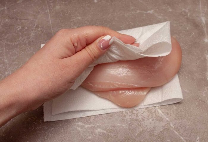 Обсушите филе бумажным полотенцем.