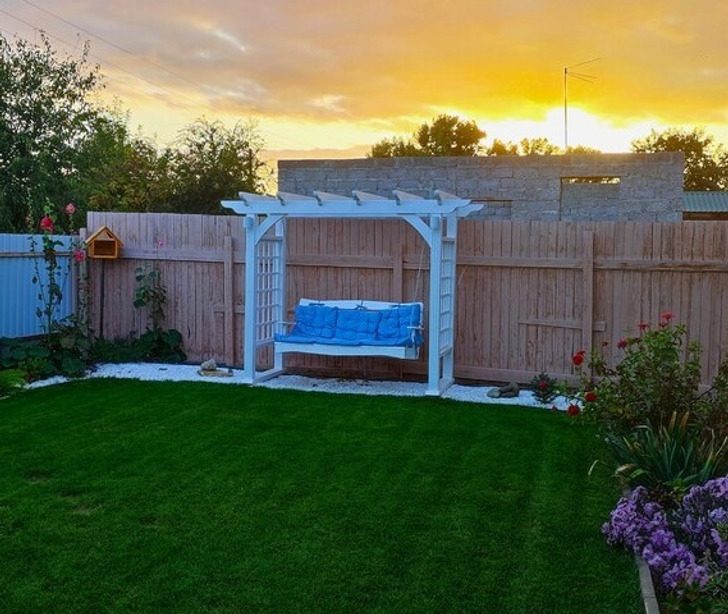 «Мы купили загородный дом. Участок был совсем не обустроен. Решили сделать палисадник, посеять газон, а я взялся за изготовление качелей. Вот они»