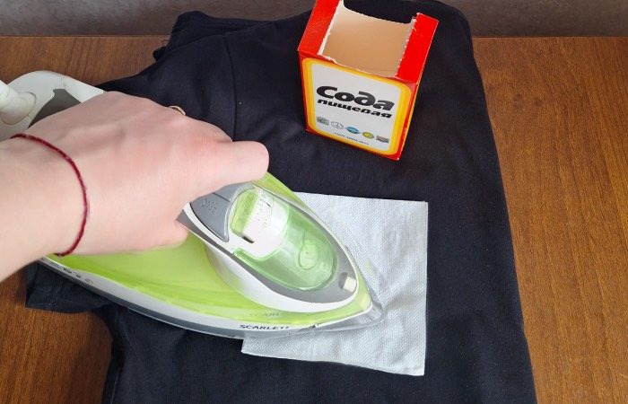 Для это вам понадобиться лишь сода, которая наверняка есть у вас дома. Просто засыпьте ей пятно. После чего прогладьте его через бумажную салфетку. Сода впитает весь жир и ваш наряд будет спасен. Просто отряхните одежду от остатков соды и отправляйтесь по своим делам.