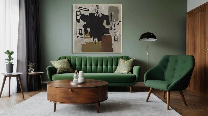 Травянистый зелёный и мокко мусс — отличное сочетание цветов в интерьере.