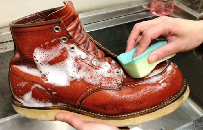 Итак, если ваша обувь уже успела пострадать от реагентов, то после прогулки ее сразу же нужно помыть. Делать это нужно незамедлительно, поскольку засохшую соль полностью удалить уже не получится. Моем сапоги с помощью мягкой щеточки в теплой воде. Особенно хорошо нужно промыть места, которые промокли от реагентов. Для мытья можно использовать специальные моющие средства для обуви. Затем хорошо пропитываем кожаную обувь хлопковой ткань и вытираем насухо металлические аксессуары.