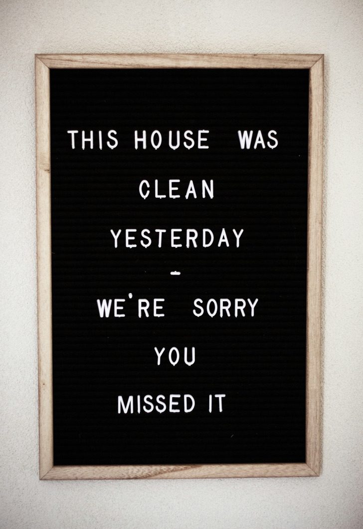 Перевод: «Вчера дом был чистым — жаль, что вы это пропустили»