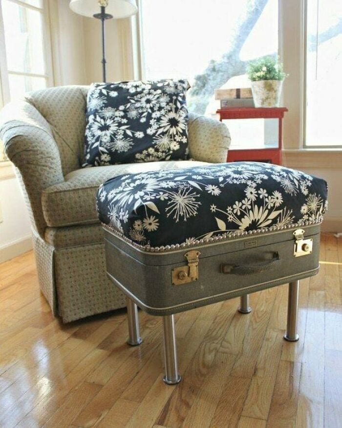 Старый чемодан — это прекрасное новое обновление в качестве пуфа!