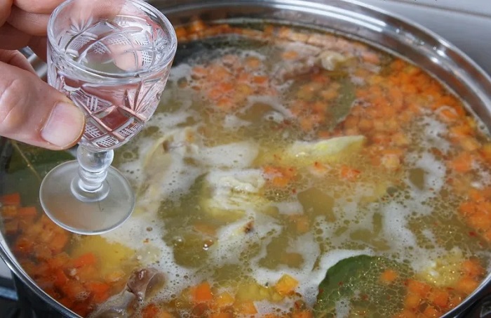 Наверняка вы знаете о том, что в традиционном рецепте ухи есть водка. Но ее добавляют не просто так. Во-первых, водка отлично устраняет неприятный запах, что особенно актуально, если вы варите уху из речной рыбы, для которой характерен болотный запах тины. А во-вторых, она делает бульон прозрачным. Этот лайфхак работает не только с рыбными, но также с мясными бульонами, поэтому можете смело использовать алкоголь, когда будете варить суп или борщ. Однако помните, что водку нужно добавлять не в кипящую, а в холодную воду. В процессе варки спирт выпарится, мясо станет мягче и нежнее, плюс вы сможете ускорить приготовление блюда.