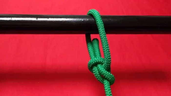 Короткий края наружной веревки заводится в ту же петлю, что и первый конец. Затем узел затягивается. В дальнейшем развязать его будет не так сложно, как при обычном связывании.
