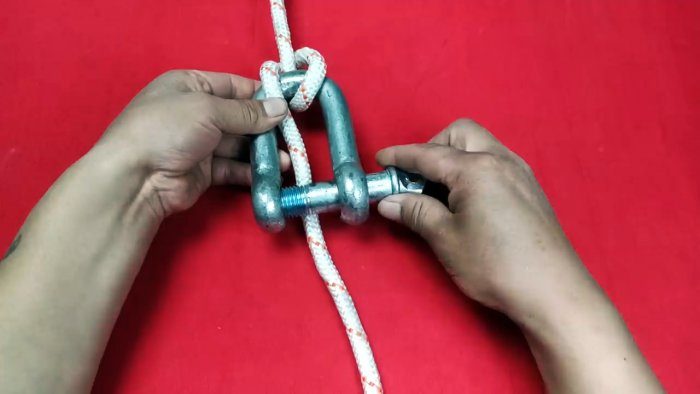 На конце веревка складывается вдвое. Затем ее нужно обвести вокруг якоря, и ввести в петлю заложенный вдвое длинный край.