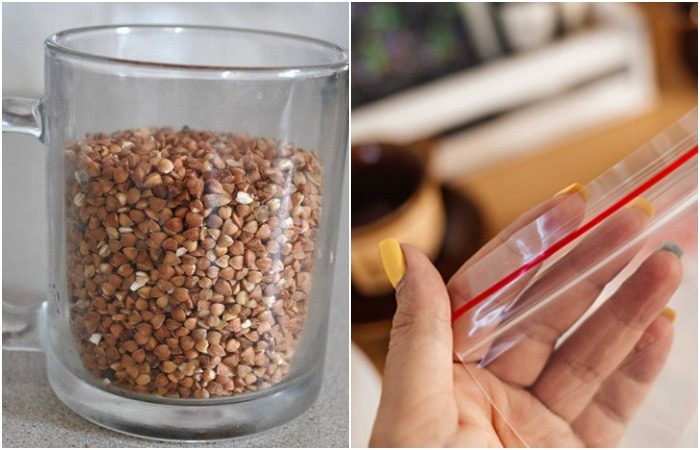 Пересыпьте гречку в зип-пакет и отрежьте уголок
