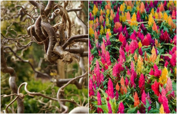 Ещё называется кручёным деревом и это действительно так, растение сразу же привлекает внимание своими изящными ветвями. И это не отдельный вид деревьев, а садовое растение, мужская разновидность обычной лещины. Кроме закрученных побегов у растения морщинистые листья, которые и создают сказочную атмосферу. Самый эффектный вид у растения зимой, когда оно открывается во всей красе, становясь настоящим украшением сада. Но и летом её листы создадут роскошный зеленый фон и она не будет выглядеть засохшим кустом. Цвести же оно начинает ранней весной, имеет желтоватые сережки и хорошо переносит полутень, и прекрасно справляется с морозами и засухой.