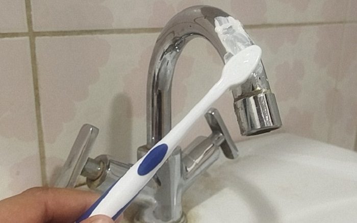 Обратите внимание: Отказ от агрессивной бытовой химии не только поможет сэкономить, но также продлит срок службы крана, насадки для душа и прочей сантехники. Дело в том, что в состав таких средств входят кислоты и щелочи, которые со временем начинают разъедать металл и керамику. Используя зубную пасту, вы сможете избежать таких последствий.