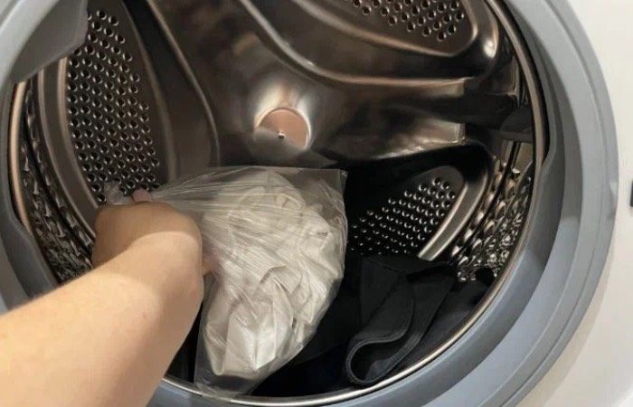 Достаточно всего лишь одного полиэтиленового пакетика. Просто поместите в него белую вещь, завяжите и отправьте стирать вместе с цветными. Пользуясь этой хитростью, вы можете быть уверены, что вещи не полиняют при стирке.