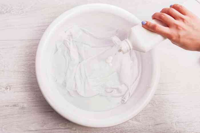 Для белых и светлых вещей подойдёт отбеливающее средство.