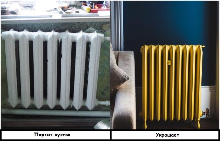 Когда мы планируем ремонт на кухне, то больше думаем о цветовой палитре отделки и гарнитура. А ведь есть другие, не менее важные детали в интерьере, от внешнего вида которых зависит интерьер комнаты. В частности. Речь идет о радиаторах отопления. Если батареи выбиваются из общей картинки, покрасьте их в такой цвет, чтобы они классно комбинировались с кухонными фасадами, декором или другими элементами. Также радиаторы могут стать самостоятельным акцентом.