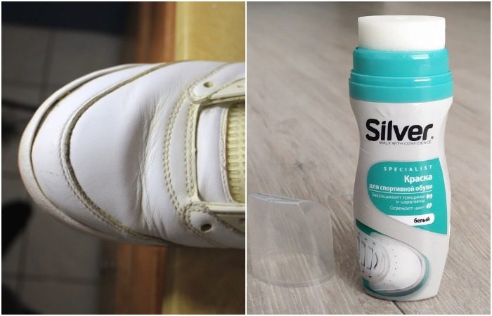 Заломы, трещины, царапины – если вы носите белую обувь регулярно, все эти «прелести» появляются на поверхности уже через пару месяцев. Понятно, что полностью устранить дефекты не получится – остается лишь замаскировать их. Для этой цели вам понадобится белая краска для обуви. Она выпускается в формате спрея или крема – выбирайте тот вариант, который будет удобным конкретно для вас. Краска одинаково хорошо работает как с тканью, так и с кожей. Нанесите ее на трещины, соблюдая инструкцию, и они станут менее заметными.